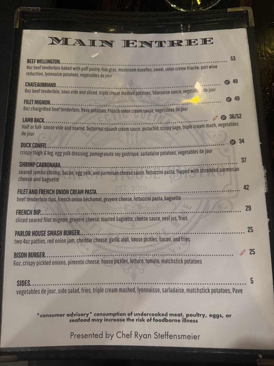 For the meat lovers, the Filet Mignon, served with Pave potatoes and a green peppercorn cognac sauce, is simply divine. Each dish is crafted to perfection, and the attentive service, exemplified by the knowledgeable staff, enhances the overall experience. With an extensive yet digestible wine list, Parlor House Bistro is the ideal spot for any occasion. Don’t miss out on this gem at 1757 Main St; it's a must-visit for any food enthusiast.